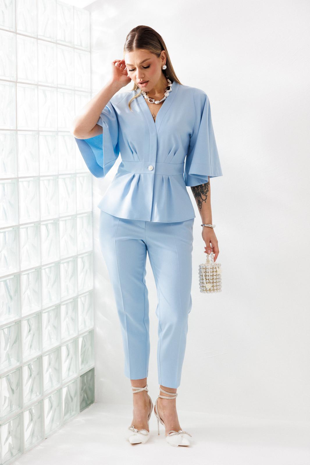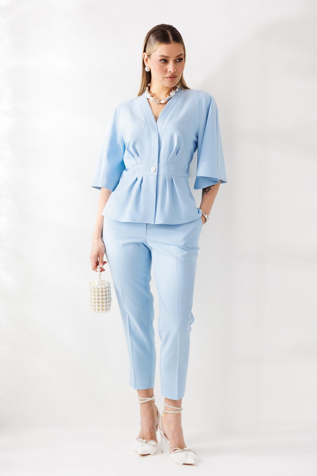 Костюм женский, состоящий из жакета и брюк, выполнен из костюмной ткани (чуть тянется).