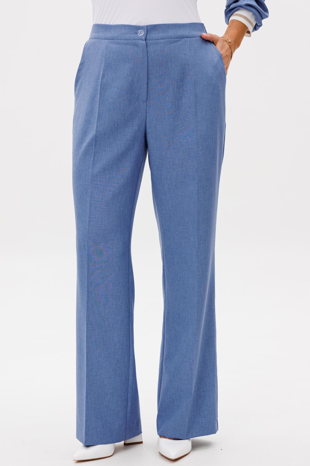 Брюки свободного прямого кроя с высокой посадкой из костюмной ткани (тянется). В боковых швах функциональные карманы. По срезу банта – застежка-молния.
