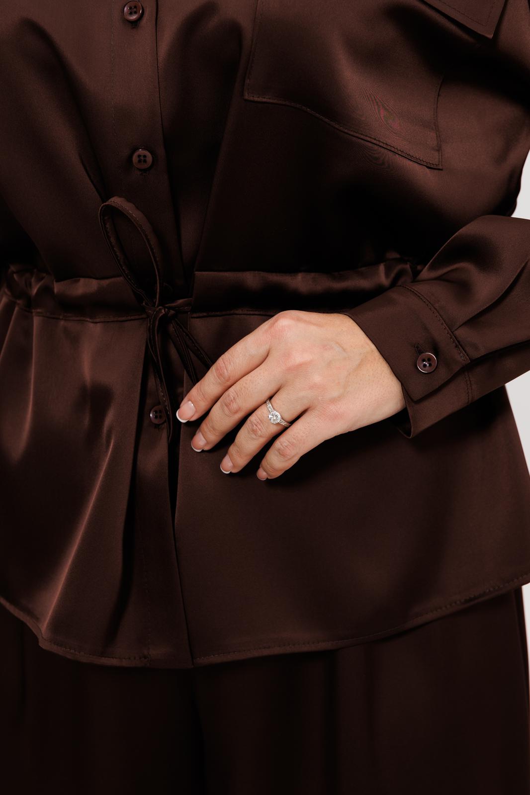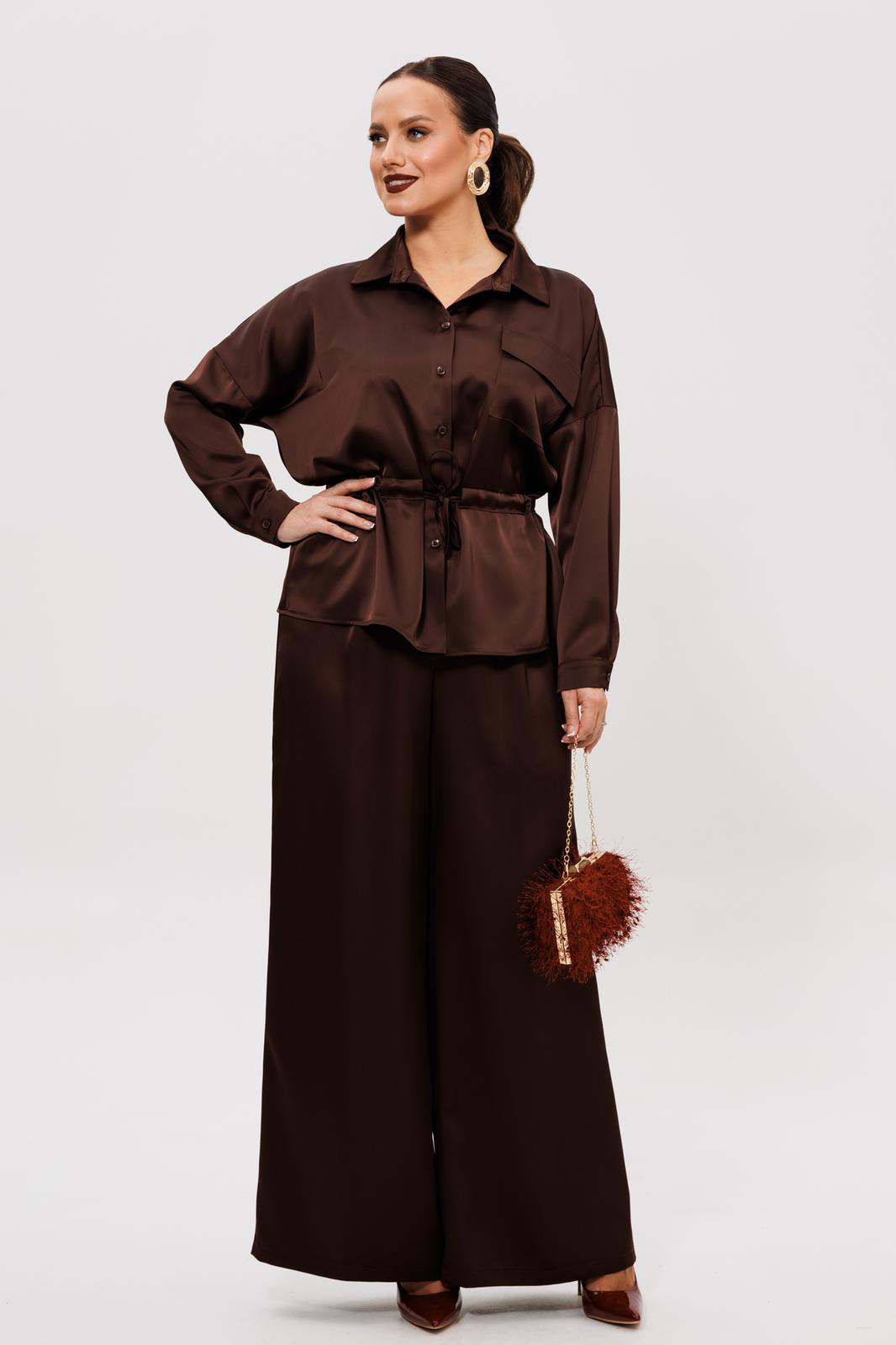 Нарядный брючный костюм, выполненный из струящегося шелка «Армани» (тянется).