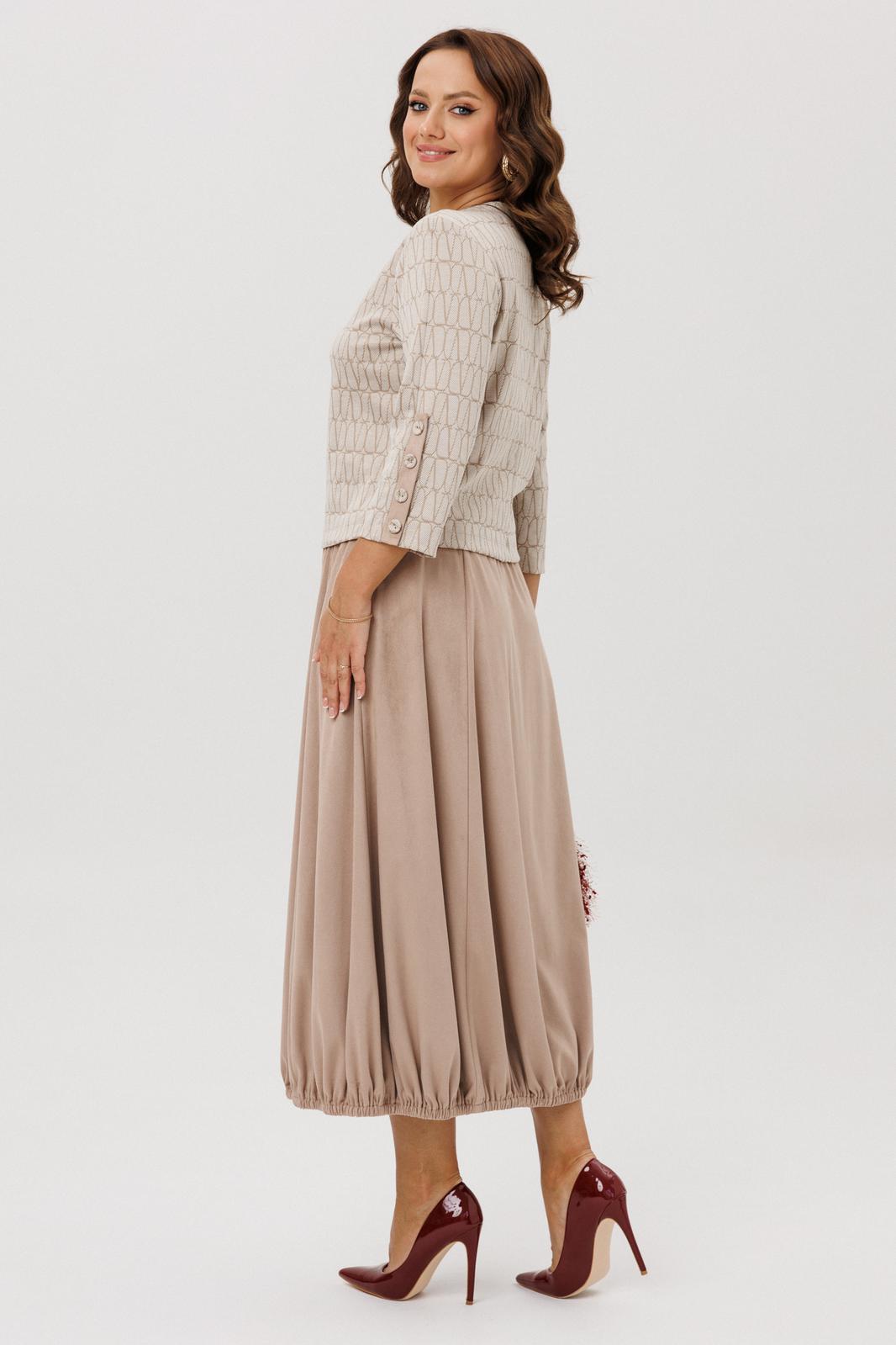 Стильный женский костюм, состоящий из джемпера и юбки.