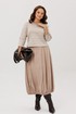 Юбка-баллон без подкладки, выполнена из костюмно-плательной ткани «Замша» (тянется). По переднему и заднему полотнищу вертикальные швы. В боковых швах функциональные карманы. Верхний срез оформлен поясом с эластичной резинкой. Нижний срез – собран резинкой.