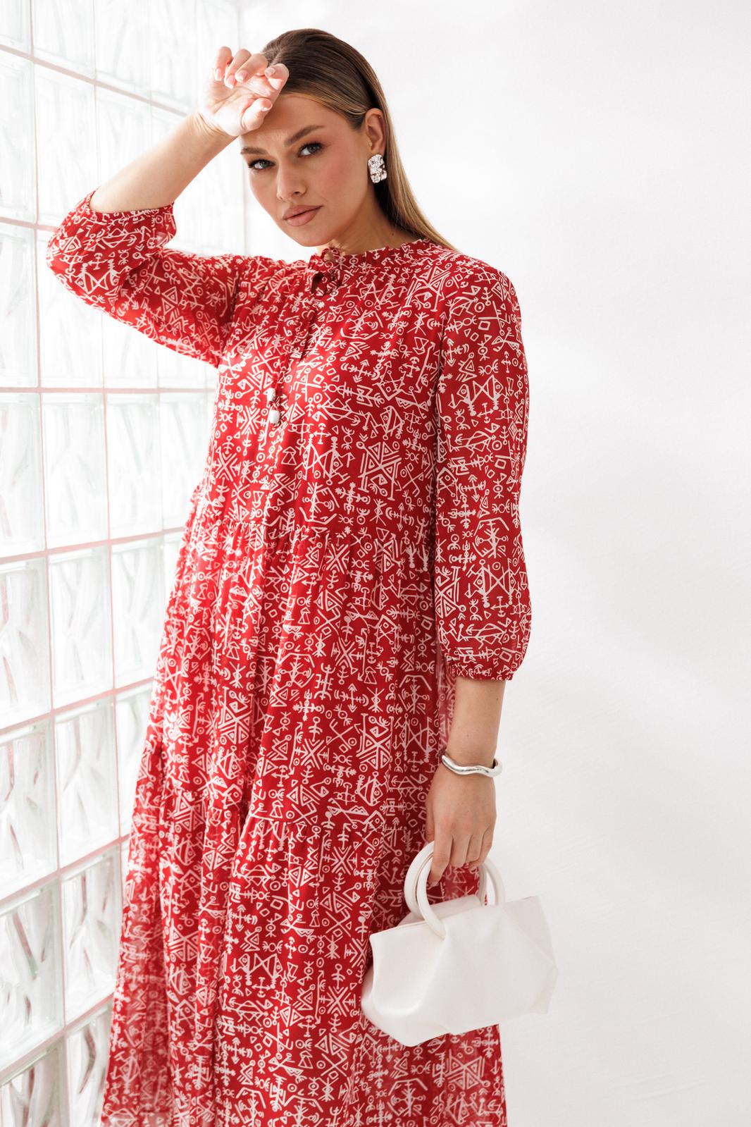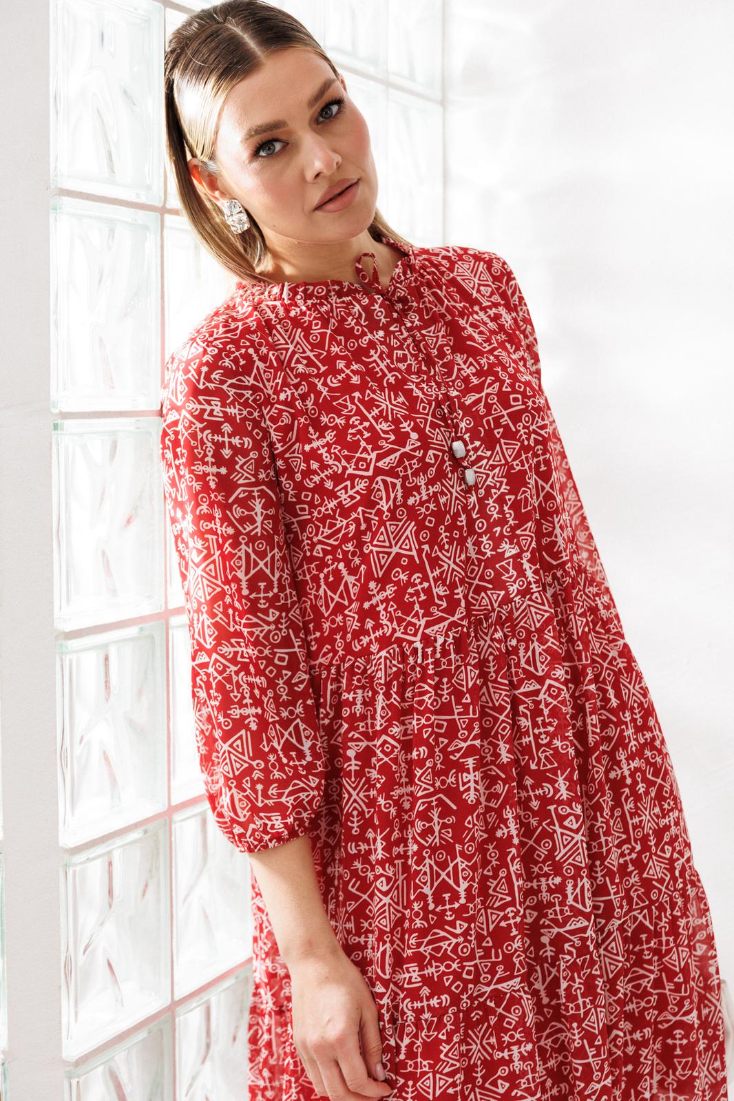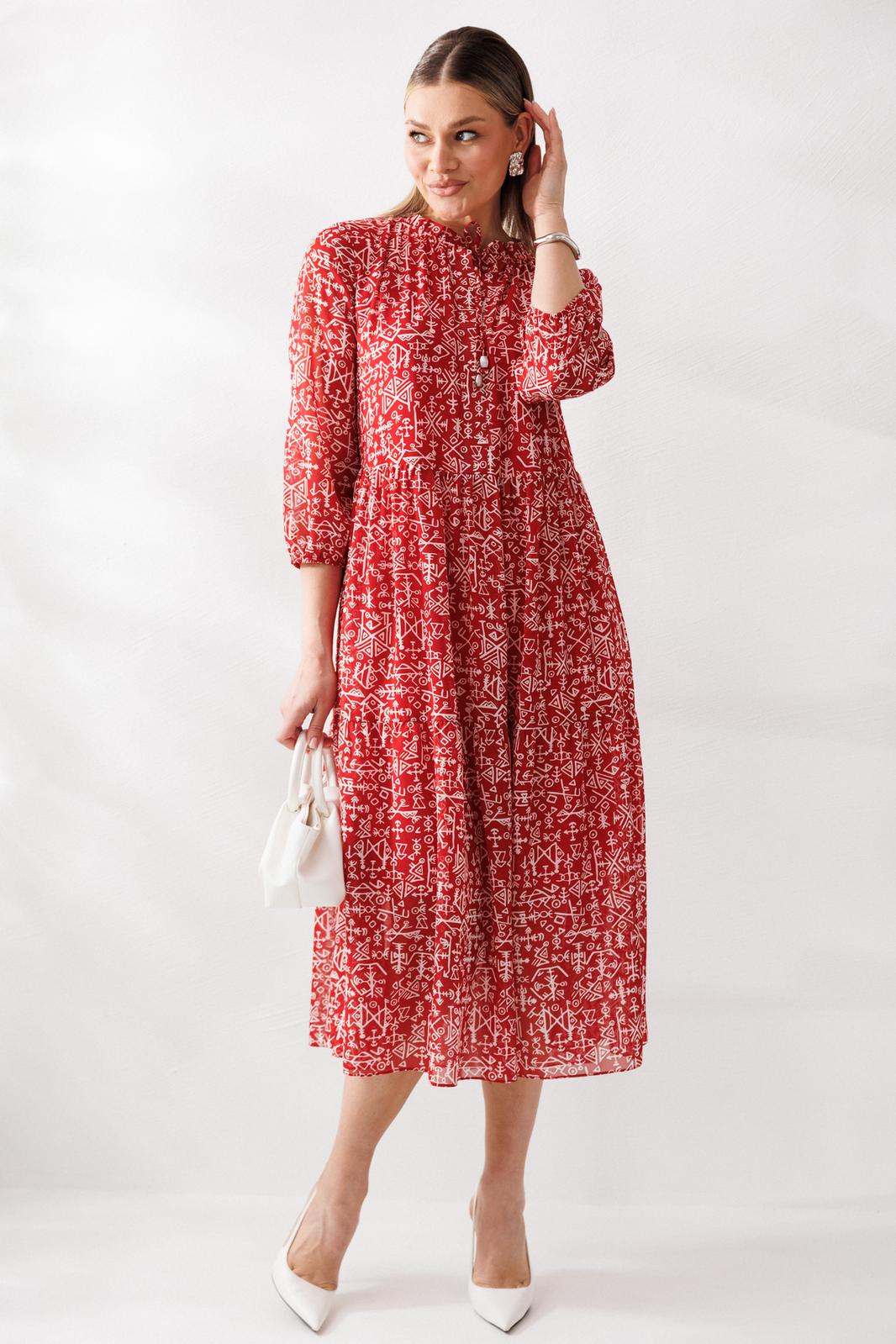 Стильное женское платье свободного силуэта, выполнено из плательной шифоновой ткани (не тянется) с дизайном «Геометрия», на подкладке (тянется).