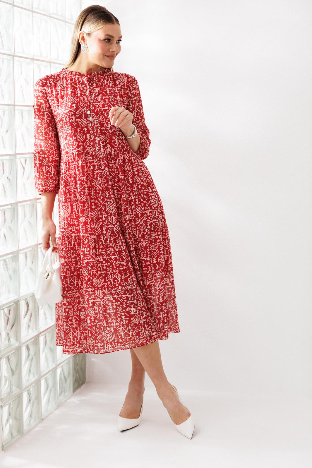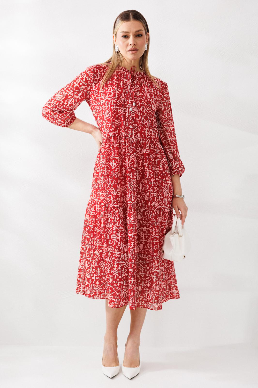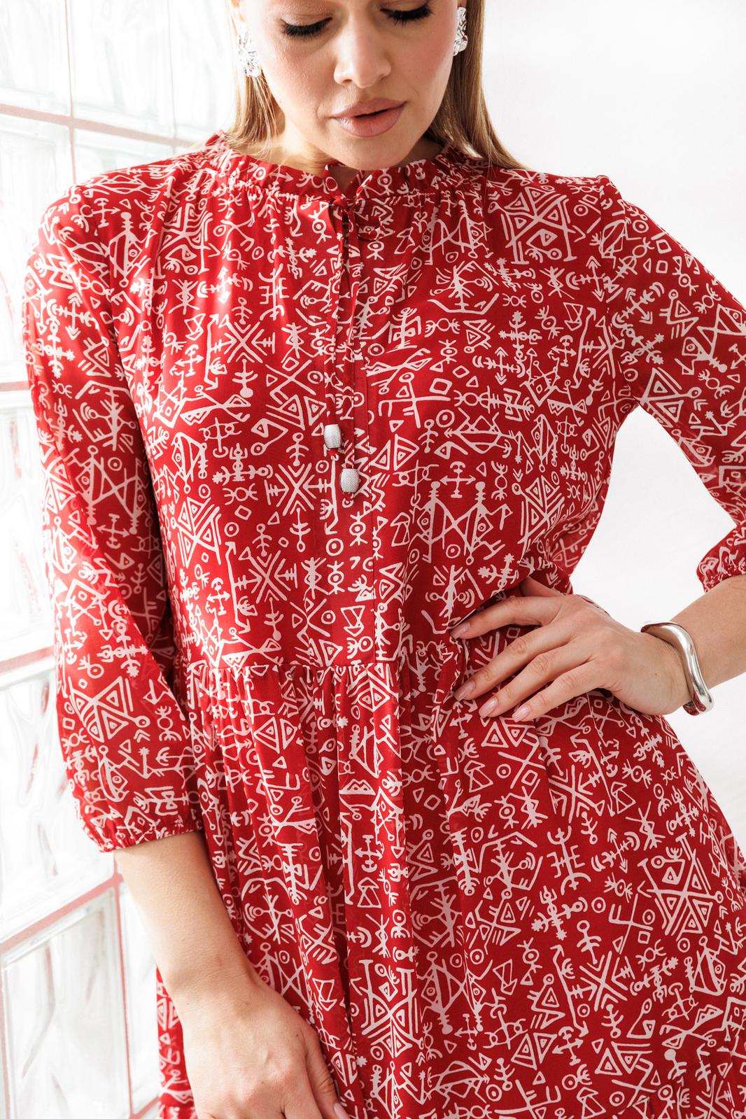 Стильное женское платье свободного силуэта, выполнено из плательной шифоновой ткани (не тянется) с дизайном «Геометрия», на подкладке (тянется).