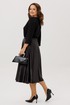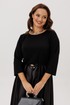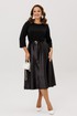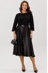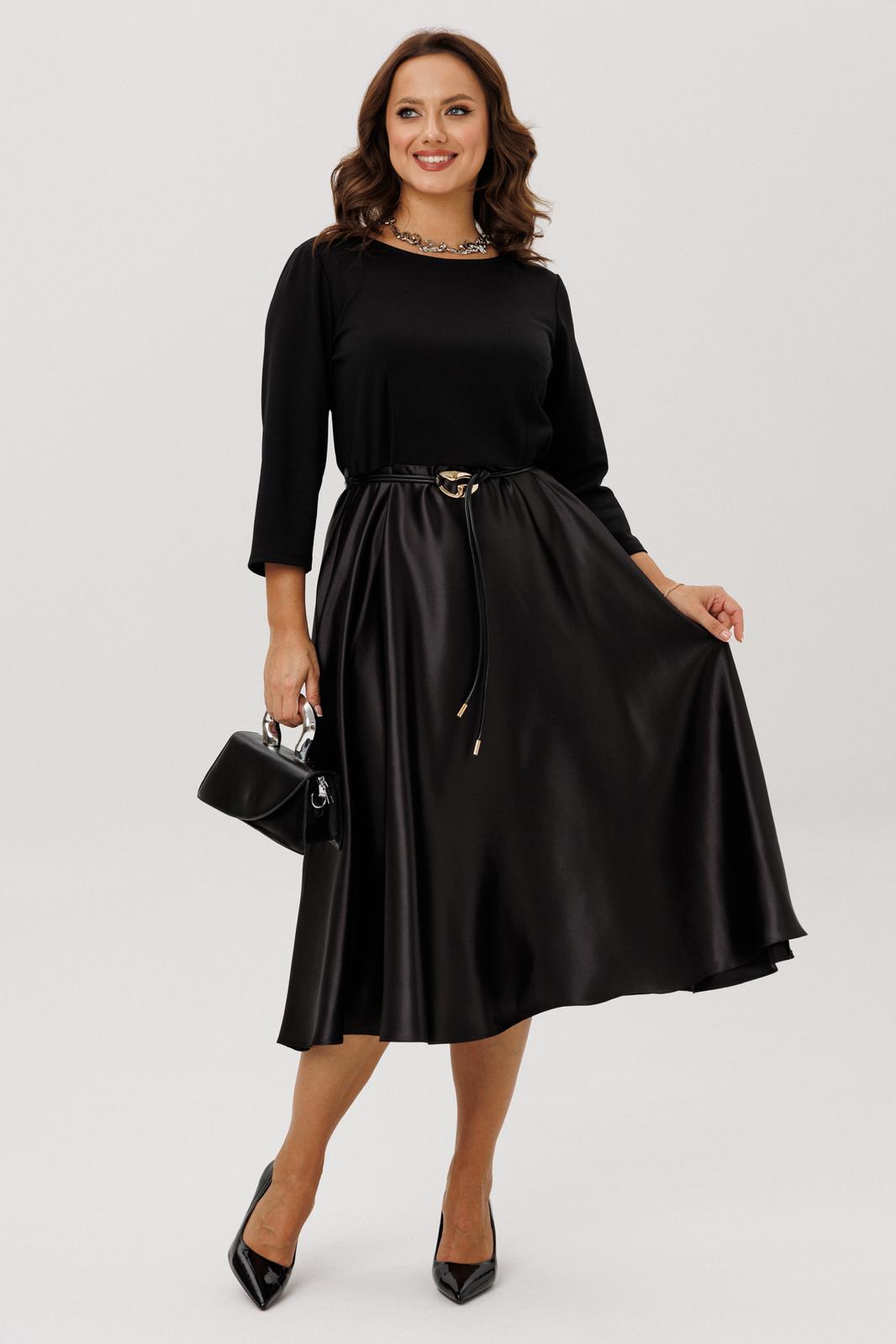 Нарядное женское платье отрезное по линии талии. Верхняя часть выполнена из трикотажного полотна (тянется), нижняя часть из плательного шелка «Армани» (немного тянется). По лифу переда – талиевые вытачки. По лифу спинки средний шов. Горловина округлой формы, обработана окантовкой. Рукава втачные, одношовные, по низу обработаны окантовкой. Нижняя часть платья – «полусолнце» по спинке со средним швом. Платье без подкладки и без застежки. В комплекте пояс. (При массовом производстве пояс может отличаться от фото. Если принципиально- уточняйте какой пояс в наличии.)