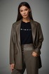 Жакет прямого силуэта, на подкладке. Воротник пиджачного типа. Центрально-бортовая застежка на две пуговицы. Рукав двухшовный. Спинка со средним швом, карманы функциональные, прорезные в рамку с клапаном. Борта слегка закруглены.