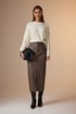 - Тип ткани: Джемпер – вискоза 50%, полиэстер 28%, пан 22%; Юбка – полиуретан 60%, вискоза 40%