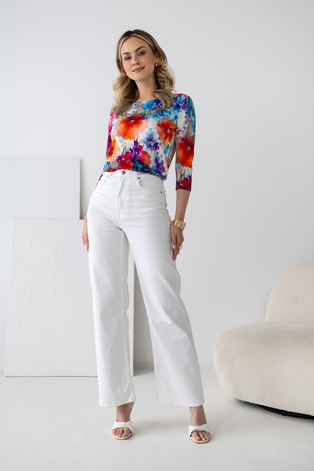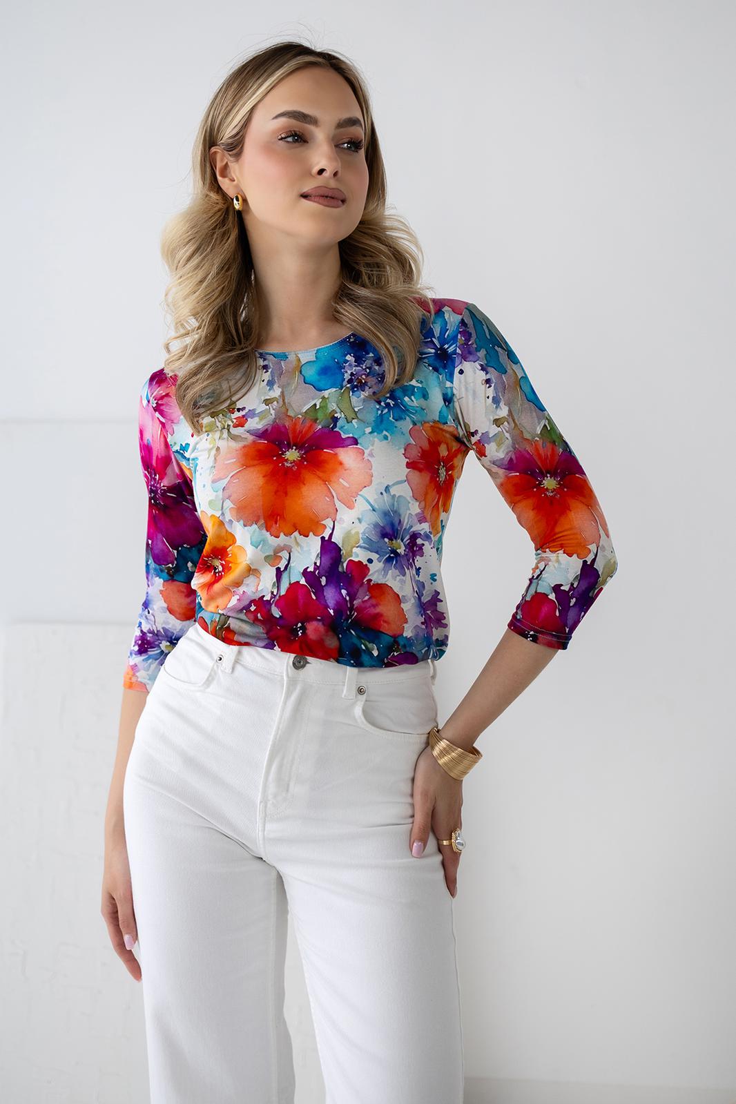 Футболка женская под джинсы повседневная из вискозы с эластаном от Nikapl из Польши. Лонгслив прямого силуэта с круглым вырезом горловины. Визуально удленяет шею. Рукава втачные, 3/4. Ткань вискоза с эластаном. Практичная. Яркие дизайны. Хороший пошив и посадка. Блузка из Польши сделана из приятной ткани и не принесёт дискомфорт в ее ношении. Качество пошива позволяет стирать ее в стиральной машине без усадки и расхождения швов. Блузки и рубашки женские это универсальные вещи, отлично подходящие для офиса, для праздника, для прогулки и на каждый день. Футболка женская большого размера будет прекрасно смотреться в комплекте с брюками классическими, джинсами большого размера и с юбкой, каждый раз помогая Вам создавать новый неповторимый образ. Практичная ткань, современный стиль, интересный дизайн, свободный покрой, широкий размерный ряд. Блузки и юбки бренда Nikapl из Польши.