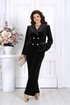 Этот костюм — воплощение классики вечерней моды и станет незаменимым вариантом для женщин, которые ищут стильный и одновременно комфортный наряд на торжество. Воротник и лацканы из сатина придают изделию утонченный и благородный вид, что делает его подходящим для новогоднего корпоратива, свадьбы или юбилея. Высококачественные материалы и продуманное лекало обеспечивают не только привлекательный внешний вид, но и максимальный комфорт. Такой костюм идеально подойдет для полных женщин, которые ценят элегантность и удобство.