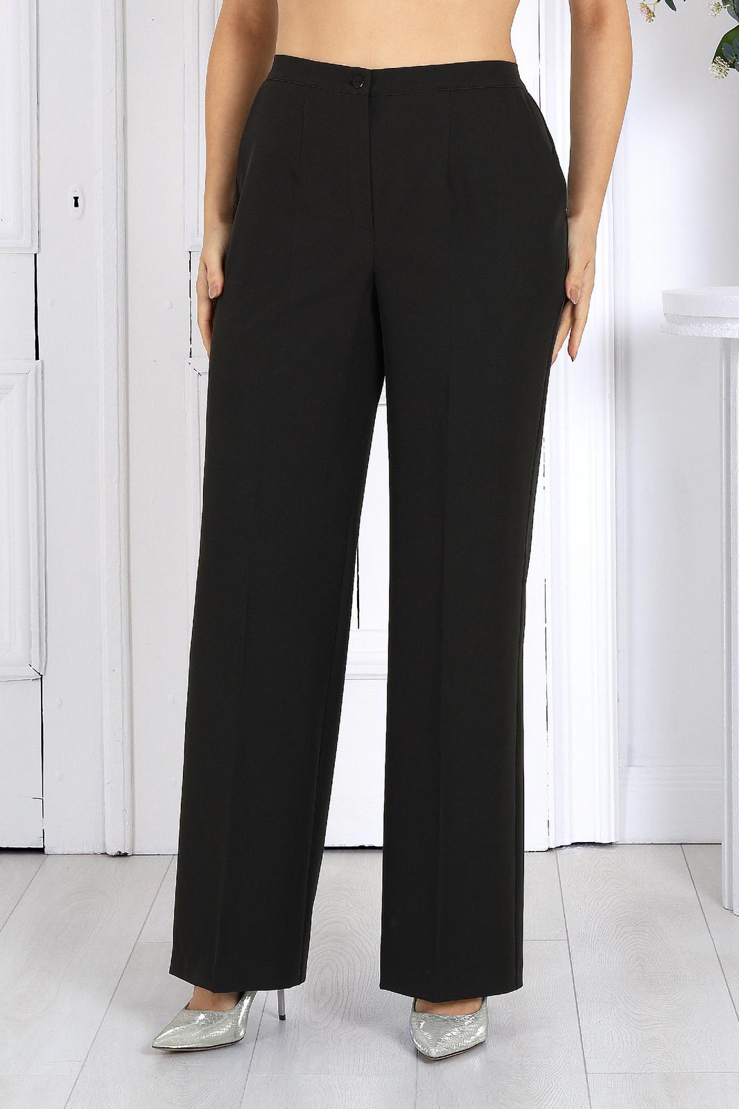 Брюки классические, длинные, с посадкой на талии, выполнены из костюмно- плательной ткани. Модель со стрелками. Передние и задние половинки брюк с талиевыми вытачками, направленными от пояса вниз. Спереди обработаны наклонные боковые карманы и центральная застёжка на тесьму-«молнию». Притачной пояс застегивается на 1 петлю и 1 пуговицу; для лучшего прилегания по линии талии в притачном поясе предусмотрена эластичная лента, вставленная по спинке. Длина брюк по боковому (с поясом) – 107 см (50-52 р-р), 108 см (54-58 р-р).