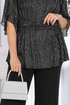 Блузка выполнена из изысканной сетки-гофре с люрексом, которая мягко переливается при каждом движении, создавая благородное сияние. Внутренняя трикотажная подкладка обеспечивает комфорт и делает посадку идеальной даже для полных женщин. Фигурный крой и драпированный пояс с перекрутом формируют женственный силуэт — акцентируют талию, визуально вытягивая фигуру и делая её стройнее. Рукава особого фасона с разрезом добавляют легкости и движения образу, придавая наряду современное звучание и ощущение воздушности.