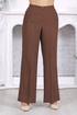 Брюки классические, длинные, с посадкой на талии, выполнены из вискозного «крэш»-полотна. Модель без стрелок. Задние и передние половинки брюк с талиевыми вытачками, направленными от пояса вниз. Спереди обработаны наклонные боковые карманы и центральная застёжка на тесьму-«молнию». Притачной пояс застегивается на 1 петлю и 1 пуговицу; для лучшего прилегания по линии талии в притачном поясе предусмотрена эластичная лента, вставленная по спинке. Длина брюк по боковому (с поясом) – 107 см (50-52 р-р), 108 см (54-58 р-р).