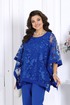 Блузка, комбинированная, выполнена из костюмно-плательной ткани и гипюра. Модель без застежки и воротника, без рукавов и плечевых накладок. Блузка состоит из двух слоев: нижний представляет собой блузку полуприлегающего силуэта, с нагрудными вытачками по переду и талиевыми – по спинке; верхний слой выполнен в виде пончо прямоугольной формы с притачной бейкой по всем краям. Горловина круглой формы, углубленная спереди. Длина блузки – 65 см.