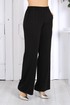 Брюки классические, длинные, с посадкой на талии, выполнены из трикотажного полотна «масло». Модель без стрелок, без застежки. Спереди обработаны наклонные боковые карманы. Для лучшего прилегания по линии талии в притачном поясе предусмотрена эластичная лента, вставленная по всей длине. Длина брюк по боковому (с поясом) – 107 см.