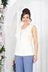 Джемпер полуприлегающего силуэта, выполнен из вискозного трикотажного полотна. Горловина округлой формы, углубленная спереди. Срезы горловины и пройм окантованы косой бейкой. Длина джемпера –64 см.