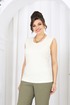 Джемпер полуприлегающего силуэта, выполнен из вискозного трикотажного полотна. Горловина округлой формы, углубленная спереди. Срезы горловины и пройм окантованы косой бейкой. Длина джемпера –64 см.