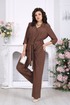 Брюки завершают комплект — прямые, струящиеся, они визуально вытягивают силуэт и дарят ощущение свободы в каждом шаге.