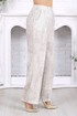 Брюки завершают комплект — прямые, струящиеся, они визуально вытягивают силуэт и дарят ощущение свободы в каждом шаге.