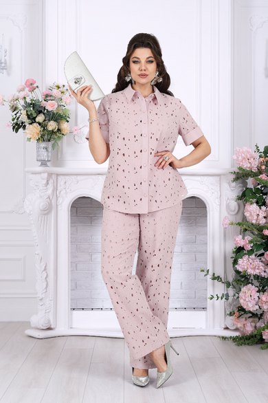 Этот праздничный брючный костюм — про элегантность без усилий. Он словно создан для особых моментов: торжеств, вечеров, встреч, где важно выглядеть безупречно и чувствовать себя уверенно. Ажурное хлопковое кружево ришелье придаёт образу утончённость, лёгкость и благородную нарядность.