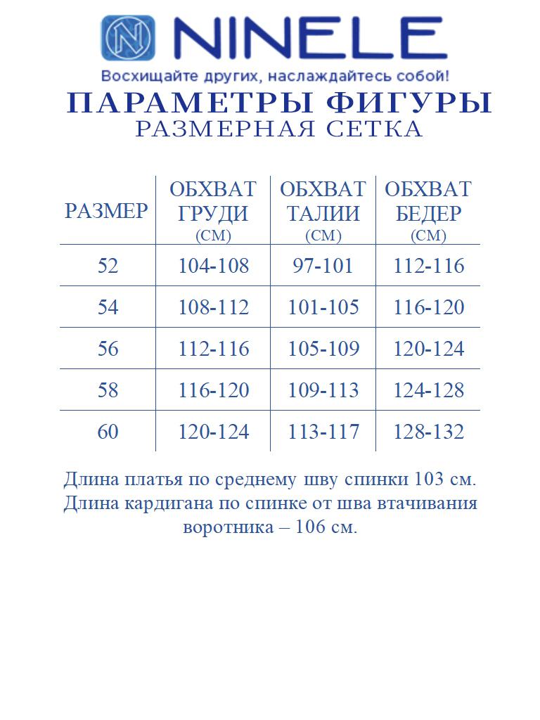 Кардиган, полуприлегающего силуэта, длиной по середине спинки 107 см от шва втачивания воротника. Перед с нагрудными вытачками, выходящими из пройм. Борта переда обработаны притачными планками из костюмно-плательной ткани. Спинка с талиевыми вытачками. Низа переда, спинки оформлены фестонами. Горловина спинки и переда округлая, по переду углубленная, с воротником стойкой. Концы воротника прямоугольной формы. Кардиган с застежкой на декоративный крючок на уровне воротника. Воротник выполнен из костюмно-плательной ткани. Рукава втачные, одношовные. Длина рукавов 51 см. Низа рукавов оформлены фестонами.