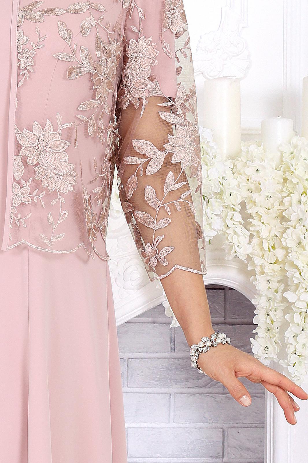 Роскошный образ, созданный для особых случаев! Этот костюм идеально подойдет для торжеств, вечеринок и мероприятий, где хочется блистать. Лёгкое шифоновое струящееся платье в пол подчеркивает женственность и визуально удлиняет силуэт, а нарядный кружевной жакет добавляет изысканности. Дополните костюм элегантными аксессуарами – и ваш стильный выход гарантирован!