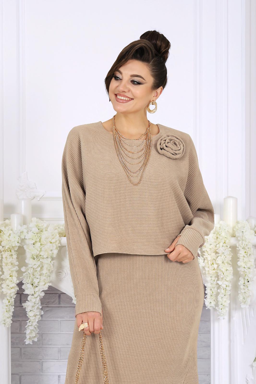 Этот костюм создан для женщин, которые ценят комфорт, аккуратную посадку и продуманный дизайн. Фактурный трикотаж с рубчиком мягко ложится по фигуре, визуально вытягивает силуэт и не сковывает движений. Модель отлично подходит для женщин с формами и уверенно смотрится в больших размерах.