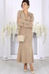 Свободный джемпер добавляет образу уюта и многослойности: его можно носить поверх платья или отдельно. Разрезы по бокам, мягкая горловина и манжеты с вырезом для большого пальца создают современный, продуманный образ. Съемный декоративный цветок позволяет менять настроение комплекта — от лаконичного до более нарядного.