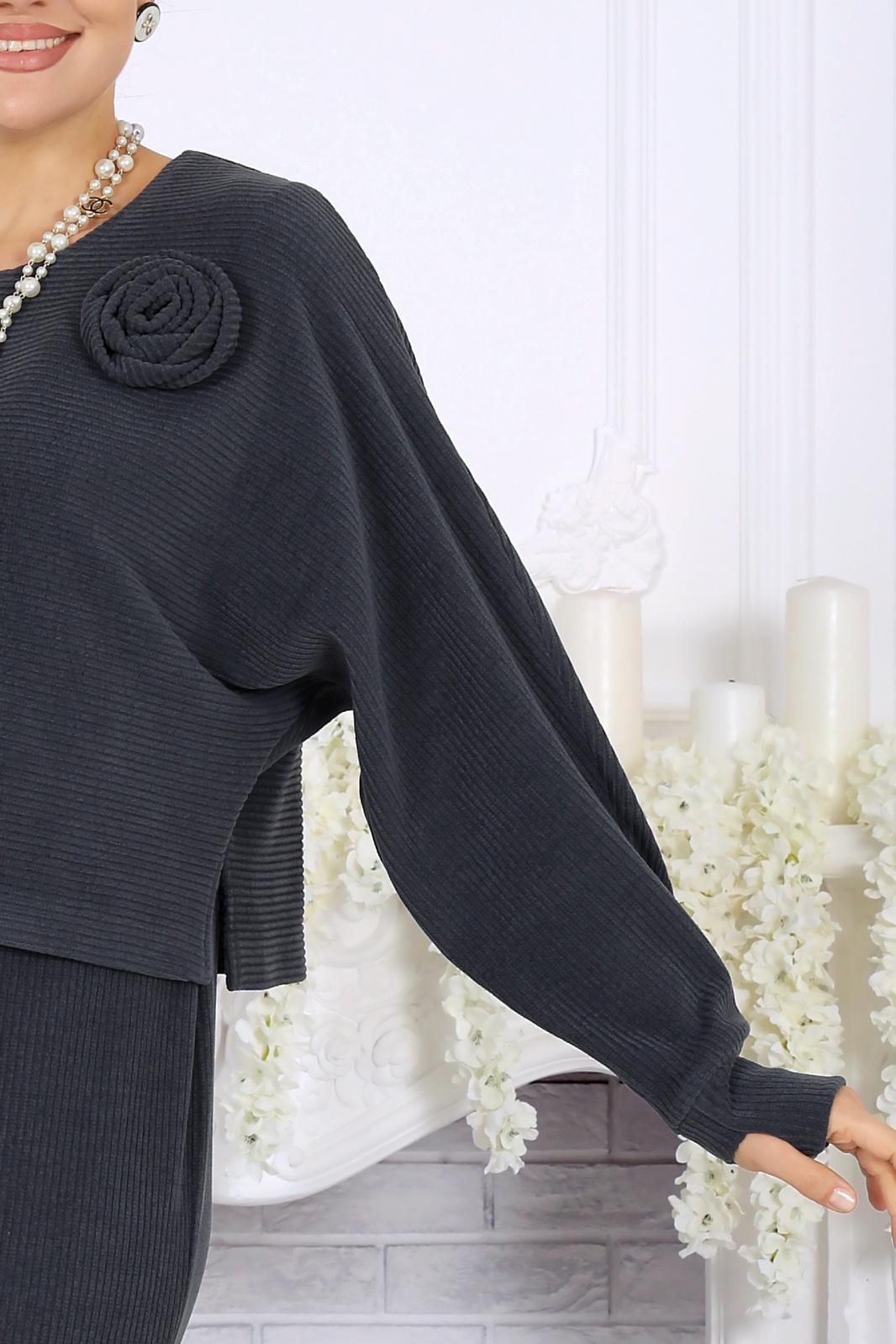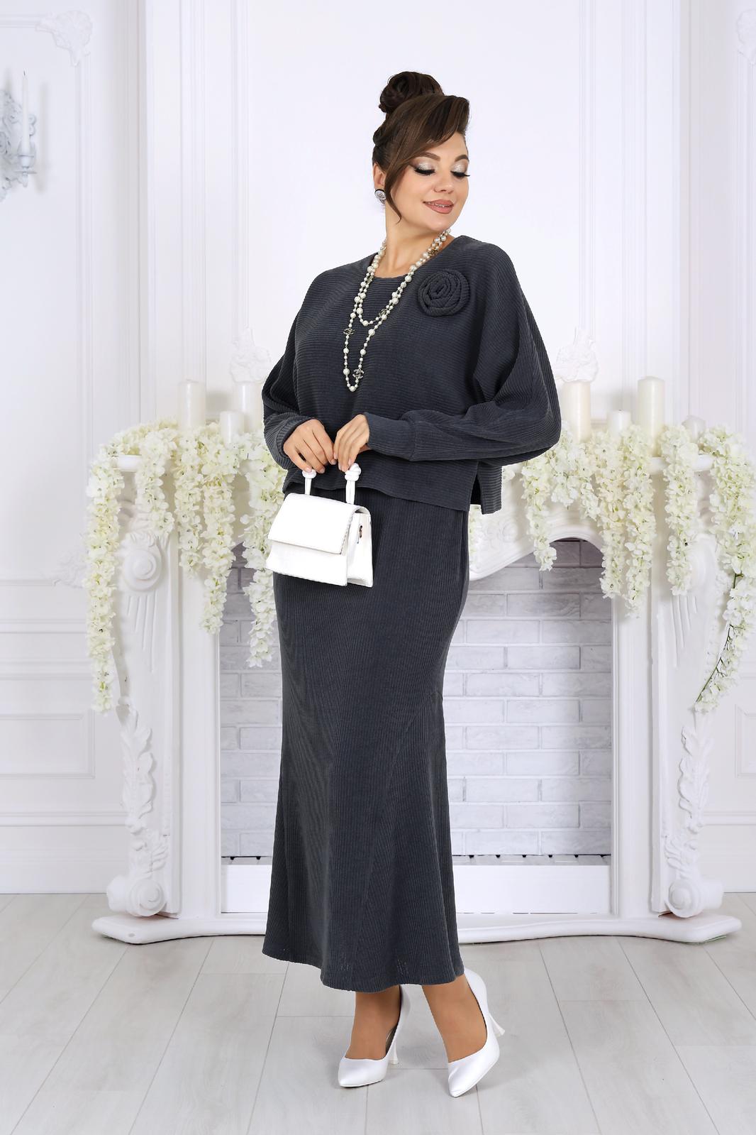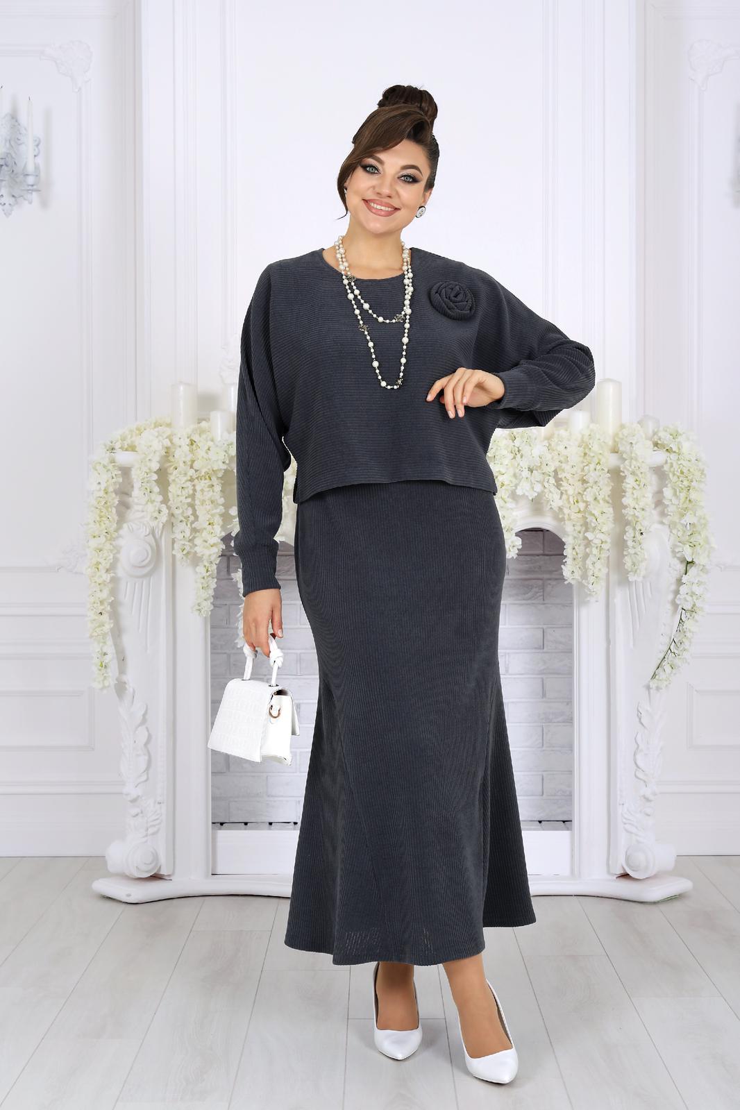 Этот костюм создан для женщин, которые ценят комфорт, аккуратную посадку и продуманный дизайн. Фактурный трикотаж с рубчиком мягко ложится по фигуре, визуально вытягивает силуэт и не сковывает движений. Модель отлично подходит для женщин с формами и уверенно смотрится в больших размерах.