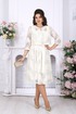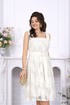 Сарафан женский, полуприлегающего силуэта, выполнен из хлопкового гипюра. Модель на хлопковой подкладке без рукавов. Сарафан отрезной по линии талии со встречными складками. Спинка и перед с рельефами, направленными от плечевых швов. В левом боковом шве обработана застежка на потайную тесьму-«молнию» (35 см). В комплекте есть пояс с пряжкой -полукольца в золоте. Горловина квадратной формы, углубленная спереди. Длина сарафана от талии до низа – 70,0 см (46-54 р-р).