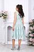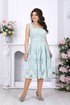 Сарафан женский, полуприлегающего силуэта, выполнен из хлопкового гипюра. Модель на хлопковой подкладке без рукавов. Сарафан отрезной по линии талии со встречными складками. Спинка и перед с рельефами, направленными от плечевых швов. В левом боковом шве обработана застежка на потайную тесьму-«молнию» (35 см). В комплекте есть пояс с пряжкой -полукольца в золоте. Горловина квадратной формы, углубленная спереди. Длина сарафана от талии до низа – 70,0 см (46-54 р-р).