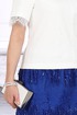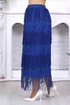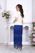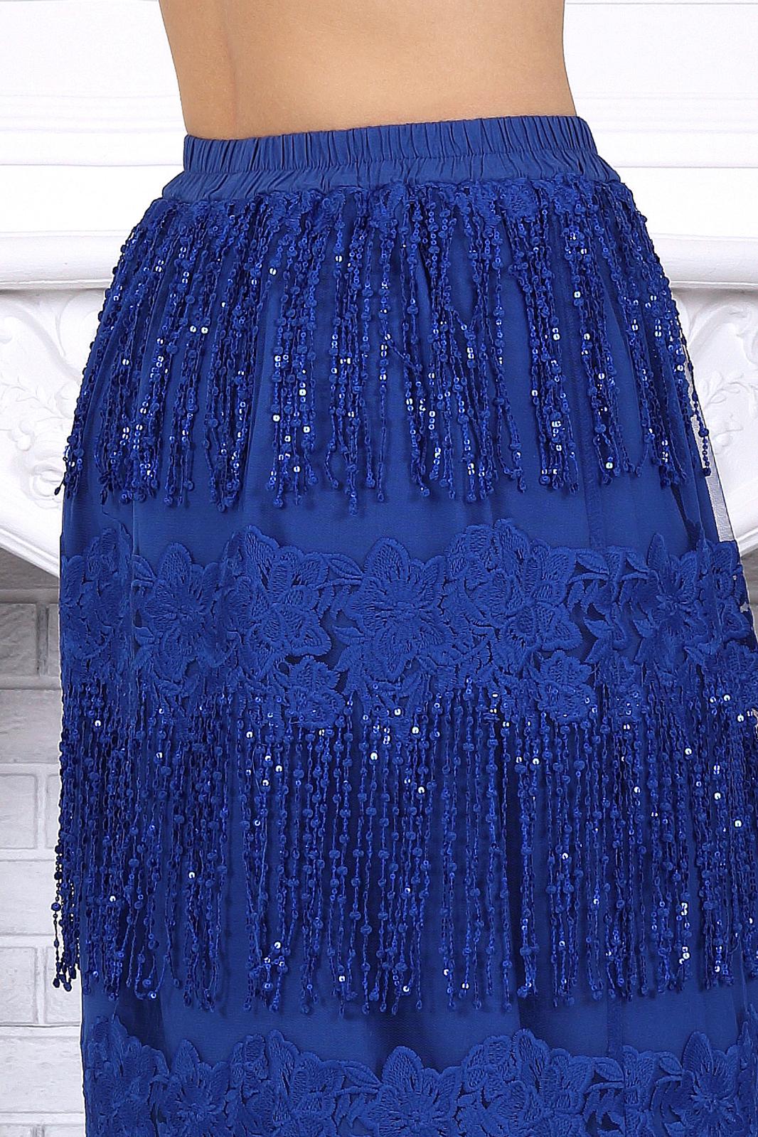 Юбка прямая, расширенная к низу. Модель двухслойная: верхний выполнен из сетки с вышивкой, нижний из хлопчатобумажного подкладочного полотна. Юбка без застежки, на притачном поясе с протянутой внутрь эластичной лентой.