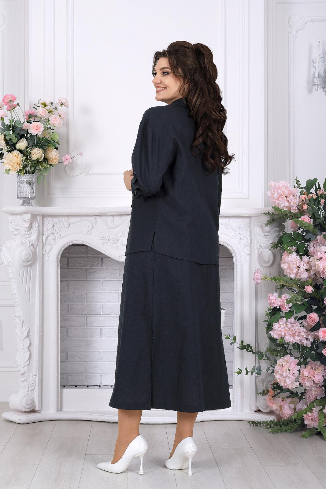 Элегантный женский костюм-двойка из натуральной льняной ткани — удачное решение для лета и весны, когда хочется выглядеть женственно, собранно и при этом чувствовать себя комфортно. Лаконичная блузка прямого силуэта со спущенной линией плеча и воротником на стойке сочетается с сарафаном А-силуэта на регулируемых бретелях. Декоративные вставки из гипюра добавляют образу мягкую нарядность, а хлопковая подкладка и разрезы по боковым швам делают модель удобной в носке. Костюм легко впишется в повседневный, офисный и деловой гардероб, а при правильных аксессуарах станет и достойным вариантом для более торжественного выхода. Белорусское качество, универсальность и комфорт для больших размеров — в модели, которая красиво садится и подчёркивает образ без лишней строгости.