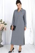 Платье женское, прямого силуэта, расширенное к низу, выполнено из трикотажного полотна. Платье женское прямого силуэта, длиной по среднему шву спинки 124 см, от шва втачивания воротника. Перед платья с нагрудными вытачками из проймы. Спинка со средним швом. В боковых швах обработаны карманы и разрезы. Воротник рубашечного типа, по переду планка «поло». Рукав втачной, одношовный, длиной 60 см. Платье без подкладки.