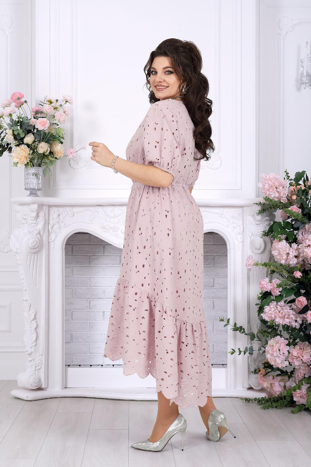 Это платье словно создано для тёплых вечеров, особых встреч и тех моментов, когда хочется выглядеть особенно красиво — нежно, женственно и по-настоящему нарядно. Ажурное хлопковое ришелье придаёт образу изысканность и лёгкость, создавая эффект дорогой, дышащей фактуры с деликатной прозрачностью.