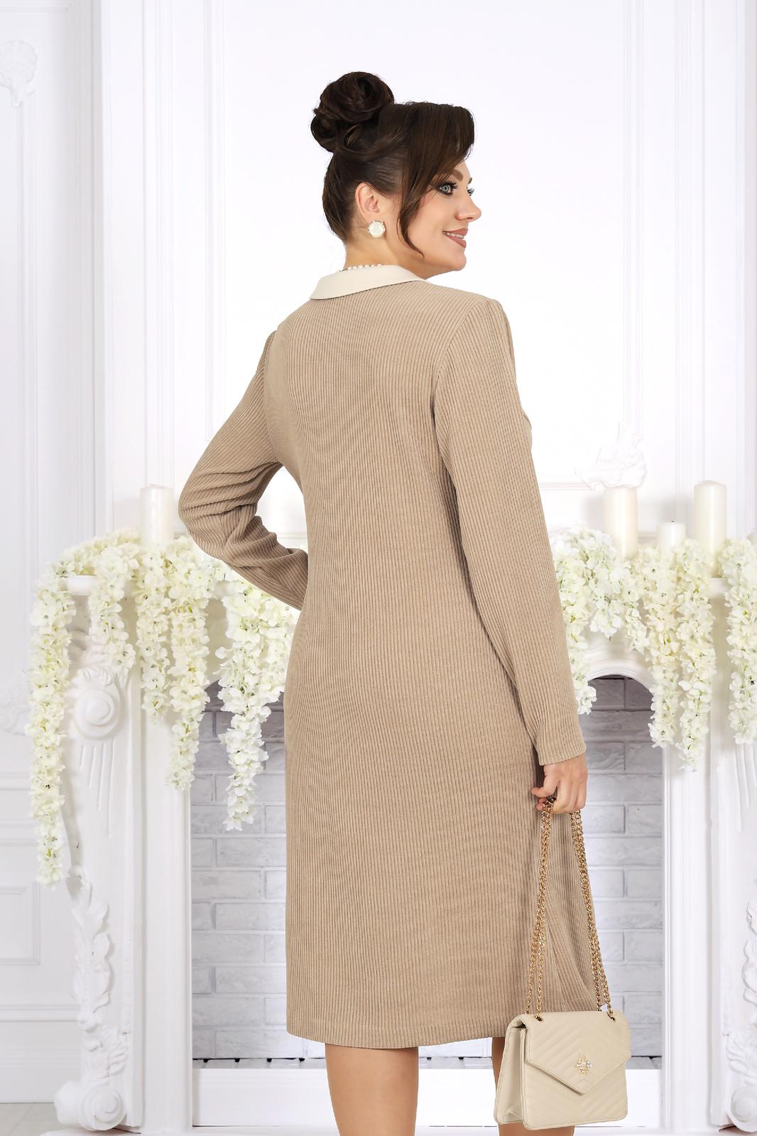 Отложной воротник придает модели нотки классики и делает платье уместным для офиса, деловых встреч и повседневных выходов. Длинный втачной рукав обеспечивает дополнительный комфорт и делает модель идеальной для прохладного сезона. Платье отлично сочетается как с лодочками и клатчем, так и с более повседневными аксессуарами.