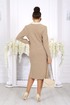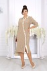 Полуприлегающий силуэт аккуратно подчеркивает фигуру, не сковывая движений, а продуманные вытачки по переду и спинке создают красивую посадку, особенно для женщин с формами. Вертикальный фигурный подрез по центру визуально вытягивает силуэт и делает образ стройнее. Контрастная планка с декоративными пуговицами добавляет изящный акцент и эффектно имитирует застежку, придавая платью стильный и ухоженный вид.