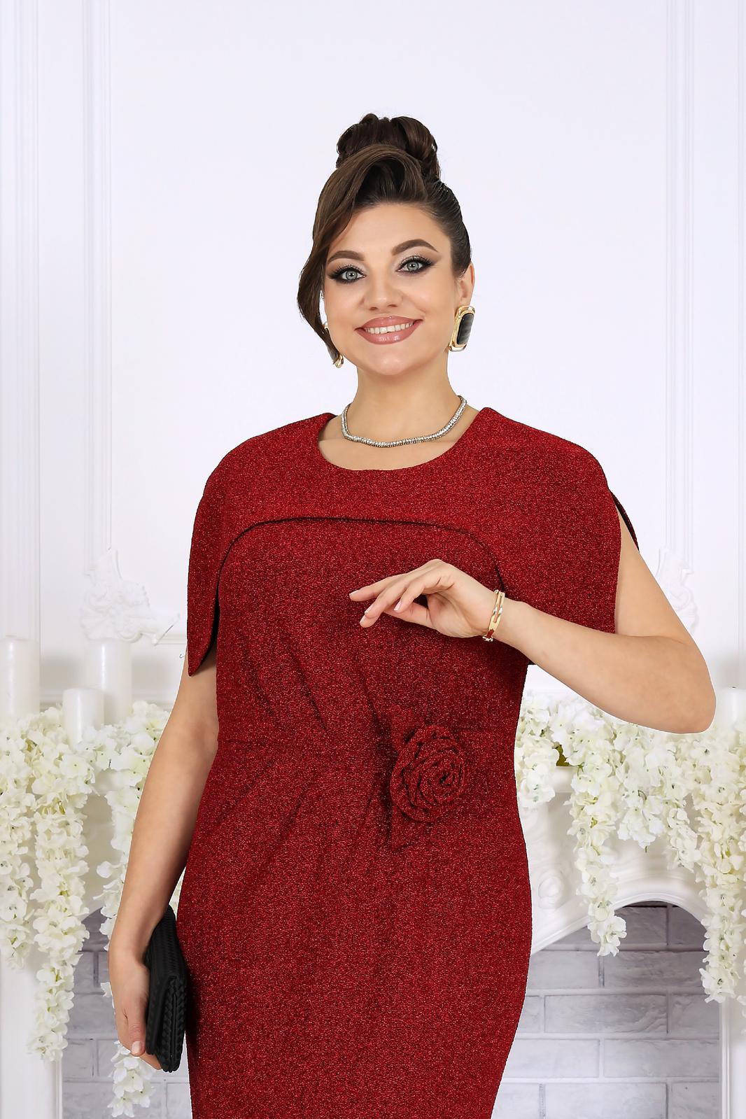Элегантное женское платье создано для особых случаев, когда хочется выглядеть безупречно и чувствовать себя уверенно. Модель полуприлегающего силуэта мягко подчёркивает фигуру, визуально вытягивает силуэт и комфортно садится на фигуру, в том числе в больших размерах.