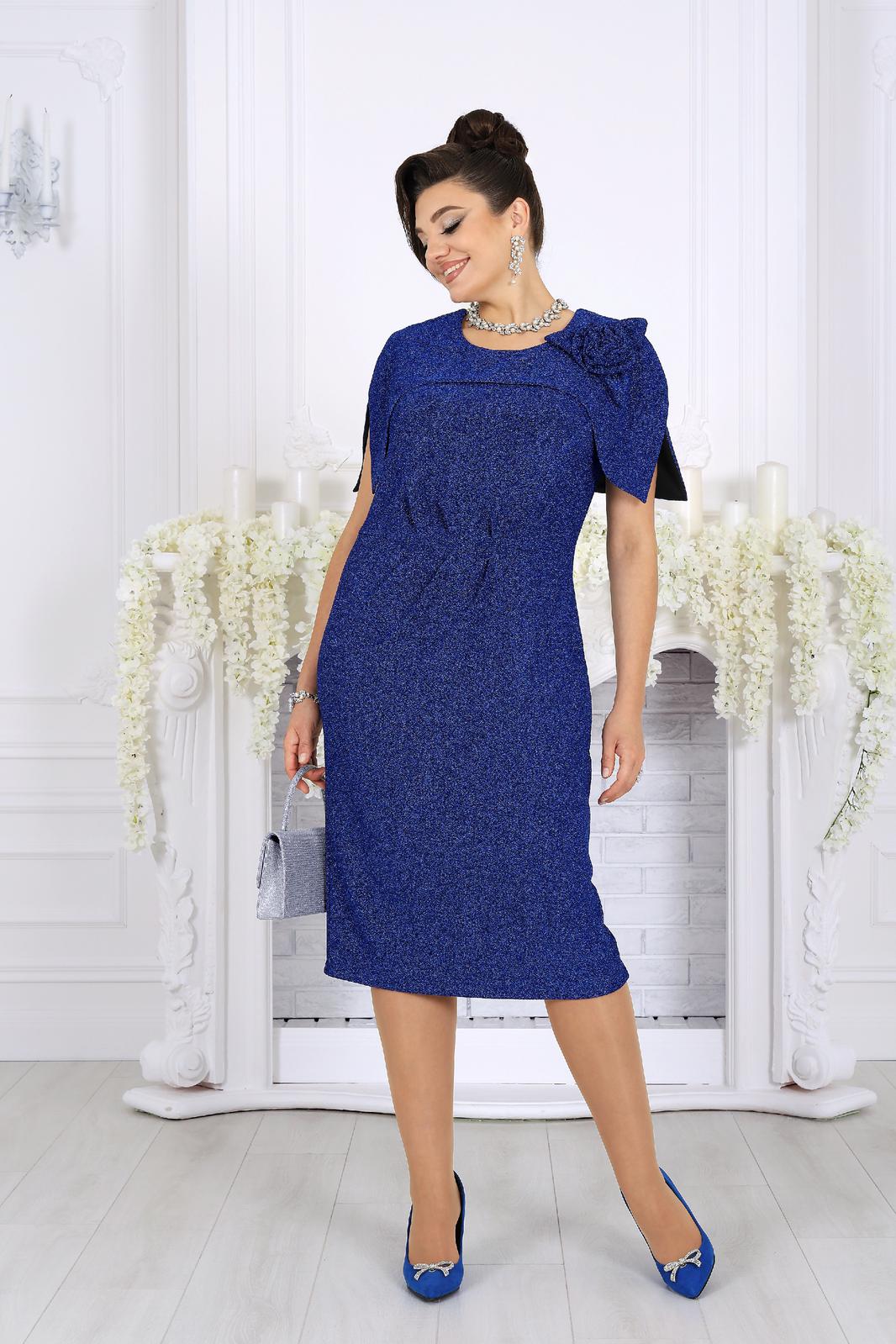 Элегантное женское платье создано для особых случаев, когда хочется выглядеть безупречно и чувствовать себя уверенно. Модель полуприлегающего силуэта мягко подчёркивает фигуру, визуально вытягивает силуэт и комфортно садится на фигуру, в том числе в больших размерах.