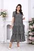 Свободный А-силуэт мягко ложится по фигуре, деликатно скрывая нюансы и создавая красивую линию силуэта. Двухъярусные воланы добавляют образу динамики и лёгкости, а кружевная фактура придаёт глубину и благородство. Короткий рукав делает платье комфортным для тёплого сезона, а натуральная хлопковая подкладка обеспечивает приятные ощущения в течение всего дня.
