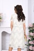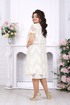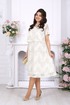 Платье женское А силуэта, выполнено из хлопкового гипюра. Модель на хлопчатобумажной подкладке, без застежки и плечевых накладок. Перед платья отлетной, с нагрудными вытачками, направленными от пройм. Под отлетным лифом, к подкладке пришита нижняя часть платья. Горловина по спинке округлая, по полочке углубленная округлая. Рукав втачной, короткий. Длина платья – 105 см; длина рукава – 23 см.