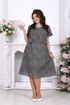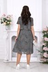 Платье женское А силуэта, выполнено из хлопкового гипюра. Модель на хлопчатобумажной подкладке, без застежки и плечевых накладок. Перед платья отлетной, с нагрудными вытачками, направленными от пройм. Под отлетным лифом, к подкладке пришита нижняя часть платья. Горловина по спинке округлая, по полочке углубленная округлая. Рукав втачной, короткий. Длина платья – 105 см; длина рукава – 23 см.