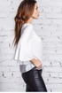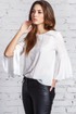 Стильная блузка прямого силуэта с отделкой кружевом спереди. Рукава втачные с притачным воланом по низу длиной ниже локтя. Застежка по горловине спинки на навесную петлю и пуговицу.