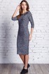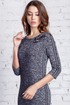 Стильное трикотажное платье полуприлегающего силуэта с меланжевым принтом. По боковому шву и центру рукава настрочена отделочная тесьма. Акцентом является брошь с вышивкой.