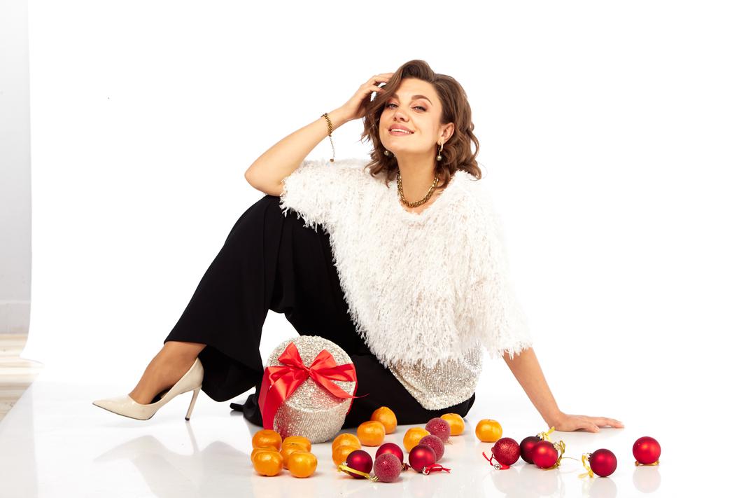 Блузка нарядная прямого силуэта, из интересной ткани с бахромой и отделкой из паеток. Вырез горловины округлой формы, со спущеныным рукавом длиной 3/4