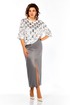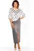 Шикарный комплект, сочетающий мягкую бахрому с пайетками и атлас -must-have сезона. Блузка нарядная прямого силуэта, из интересной ткани с бахромой и паетками. Вырез горловины округлой формы, со спущенным рукавом длиной 3/4. Юбка длиной миди на поясе (резинка по бокам) из атласной ткани. По спинке средний шов, в который вставлена потайная молния, разрез по центру по полочке.