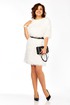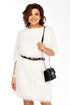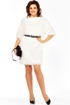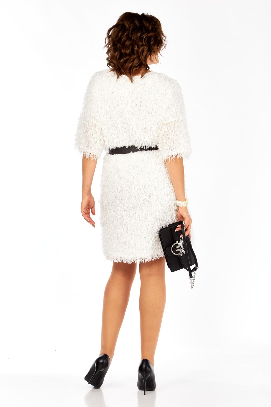 Платье нарядное прямого силуэта, из интересной ткани с бахромой, с округлым вырезом горловины и спущенной линией плеча. Рукав длиной до локтя. Длина платья 92см, длина рукава от горловины 41,5см