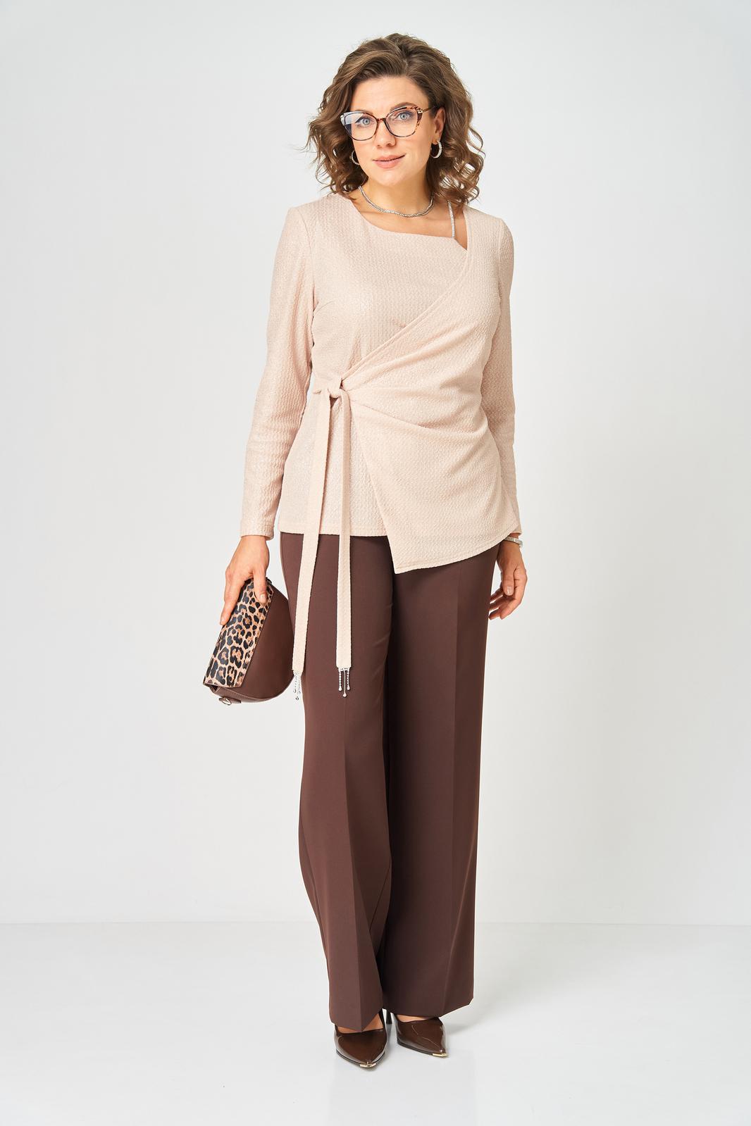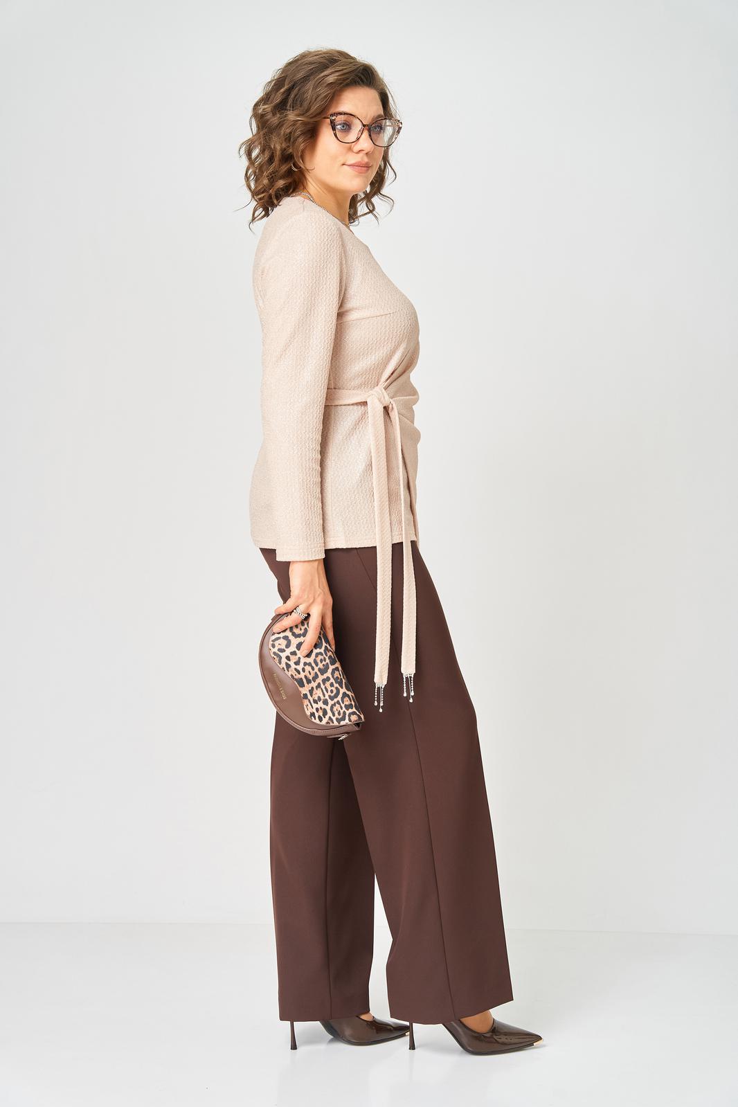 Комплект женский, состоящий из блузы трикотажного полотна с блеском и брюк из костюмной ткани.
