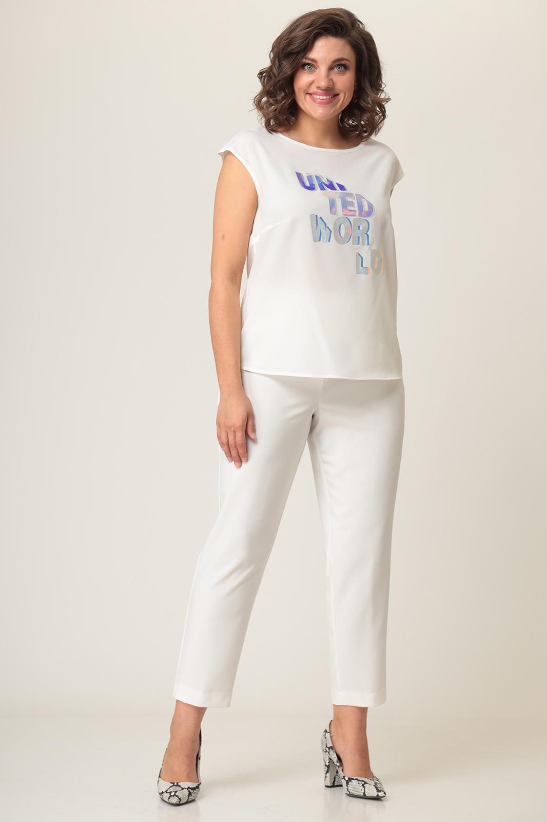 Комплект женский трехпредметный состоит из блузы, брюк и топа.