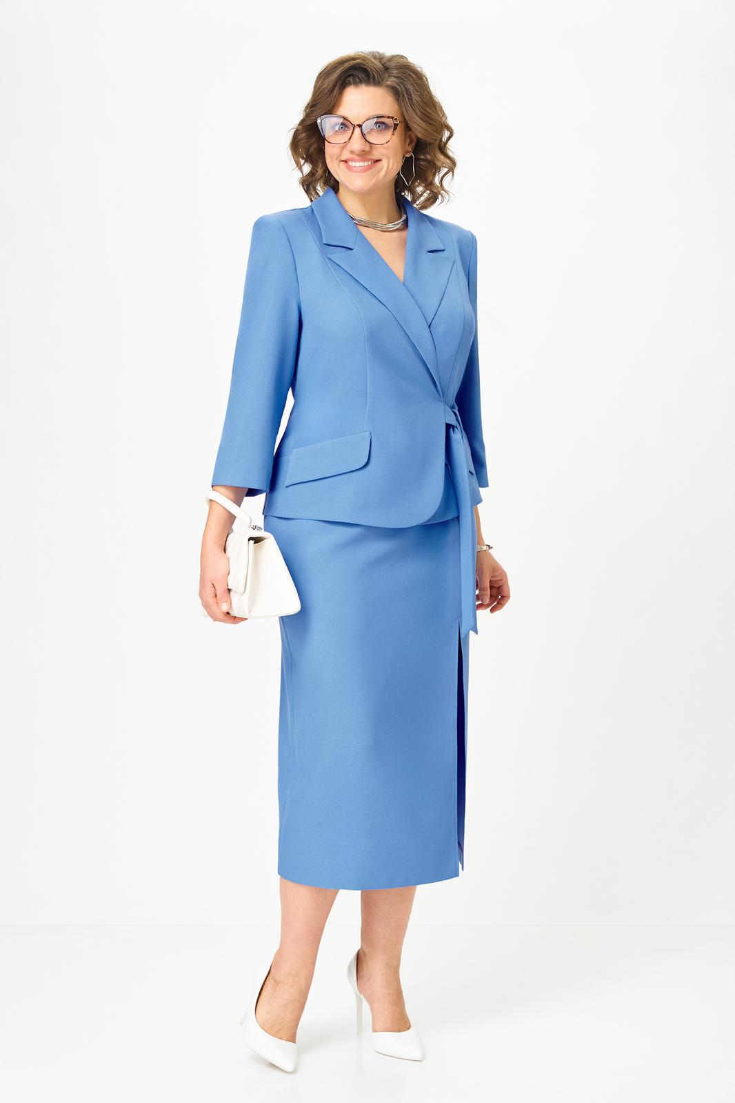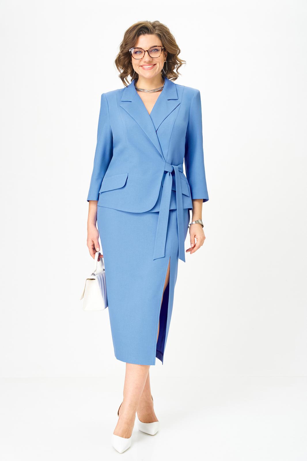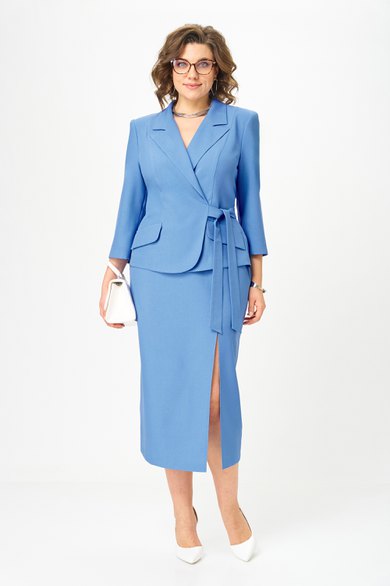 Комплект женский состоящий из жакета и юбки, выполнен из однотонной костюмно-плательной ткани.