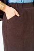 Юбка длинная, зауженная книзу, с рельефами по переднему и заднему полотнищу. В боковых частях переднего полотнища накладные карманы. По центру переднего полотнища выполнен шов с имитацией застежки. По центру заднего полотнища шов, в котором снизу разрез, сверху – застежка на потайную молнию. Верхний срез обработан поясом с резинкой по боковым швам.
