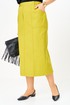 Юбка длинная, зауженная книзу, с рельефами по переднему и заднему полотнищу. В боковых частях переднего полотнища накладные карманы. По центру переднего полотнища выполнен шов с имитацией застежки. По центру заднего полотнища шов, в котором снизу разрез, а сверху – застежка на потайную молнию. Верхний срез обработан поясом с резинкой по боковым швам.